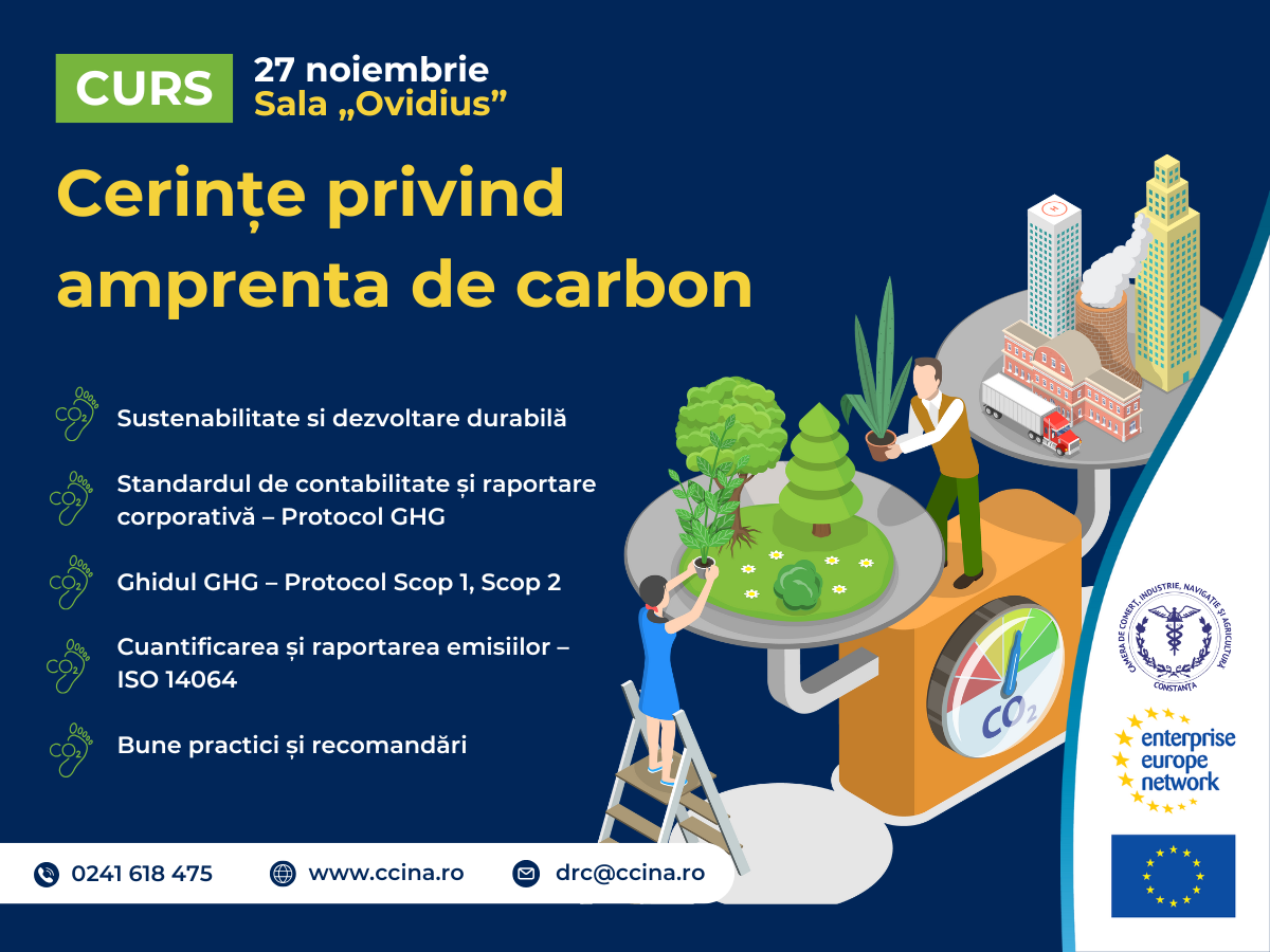 🌍 “Cerințe privind Amprenta de Carbon”, curs organizat de Camera de Comerț, Industrie, Navigație și Agricultură Constanța, prin centrul Enterprise Europe Network Constanta, în colaborare cu Sea Training Center